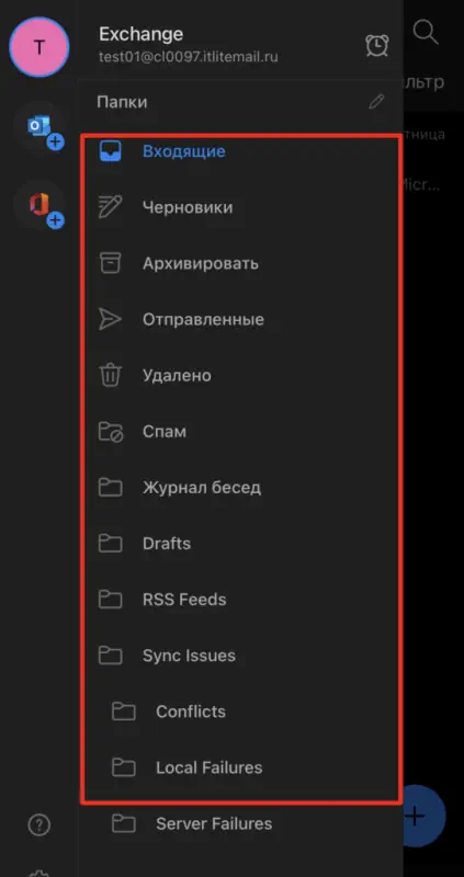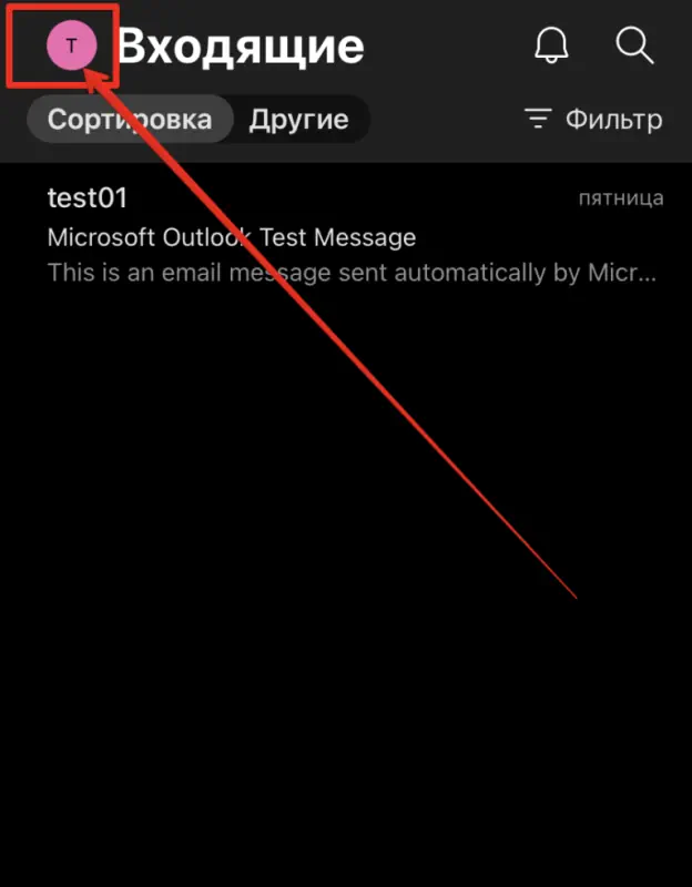 Для просмотра всех почтовых папок, нажмите на иконку профиля слева сверху