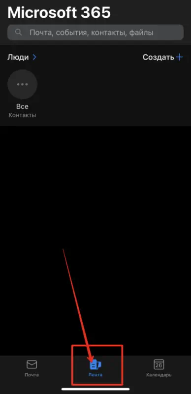 Нажмите «Лента» внизу посередине