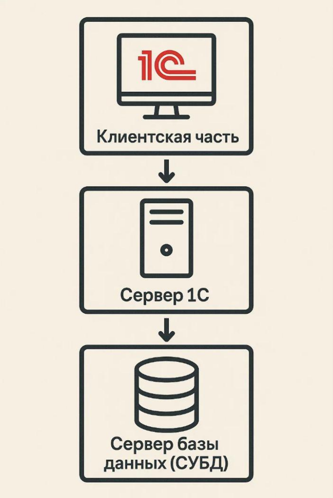 - Клиентская часть – программа 1С, установленная на компьютере пользователя (толстый, тонкий или веб-клиент)