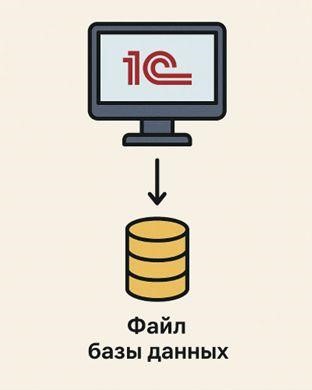 В данном режиме вся информационная база 1С хранится в одном файле с расширением .1CD, который содержит все компоненты системы: конфигурацию, справочники, документы, отчеты и настройки. Файл с базой данных может находиться на локальном компьютере или в сетевой папке, обеспечивая доступ нескольких пользователей по локальной сети.