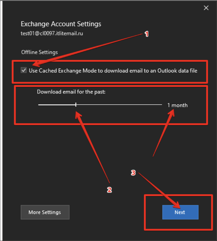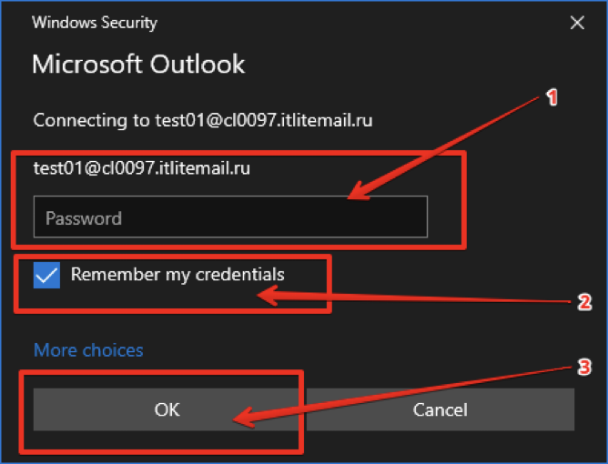 Если всё выполнено верно Outlook сообщит об успешном добавлении почтового ящика.