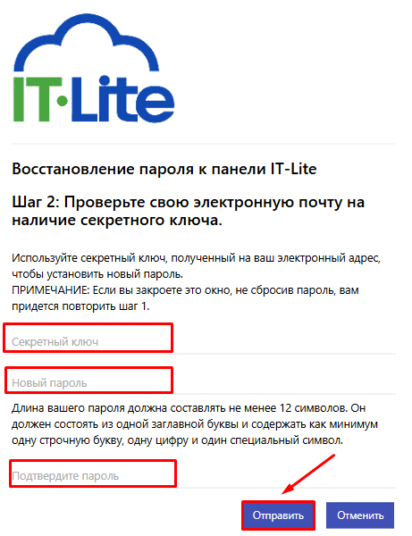 - Подтвердить пароль. Нажать на кнопку Отправить.