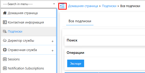 На вкладке Операции доступна опция по экспорту сведений по подписке в таблицу формата Excel.